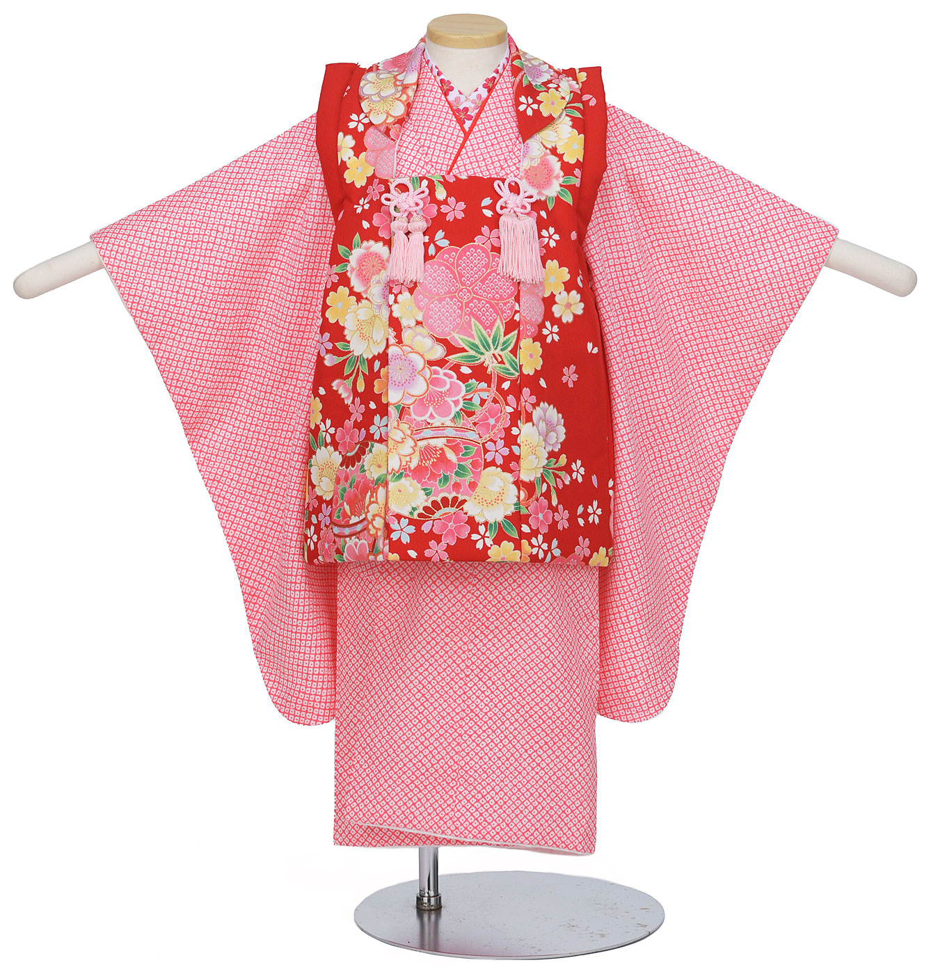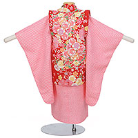 F3-013:3歳女児被布ピンク疋田(ひった)/赤鞠被布