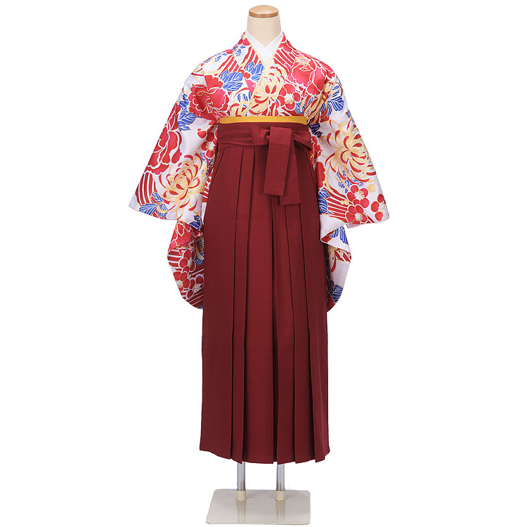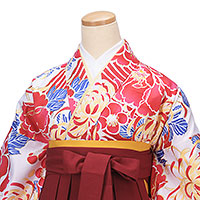 FH-004:卒業式袴・白地赤青大柄xエンジ無地袴